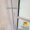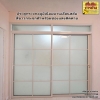 ประตูกระจกอลูมิเนียมบานเลื่อนสลับสีขาวกระจกฝ้าพร้อมช่องแสงติดตาย@เอื้ออาทรคลองถนน
