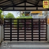 ประตูเหล็กผสมอลูมิเนียมลายไม้วอลนัทแดงพร้อมรั้ว@สา